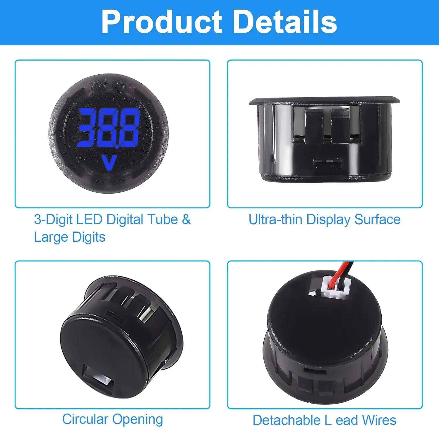 This 2-piece set of DC 4-100V digital voltmeters offers precise real-time voltage monitoring for 12V, 24V, and higher battery systems up to 100V. Featuring a clear 3-digit LED display with ±1% accuracy, these waterproof meters help protect your vehicle’s battery by showing exact voltage levels. Suitable for cars, motorcycles, boats, and more, they are easy to install and operate within -10℃ to 65℃. Note: Input voltage must not exceed 100V to avoid damage. Each meter includes 20cm leads and comes in red, green, or blue display options.