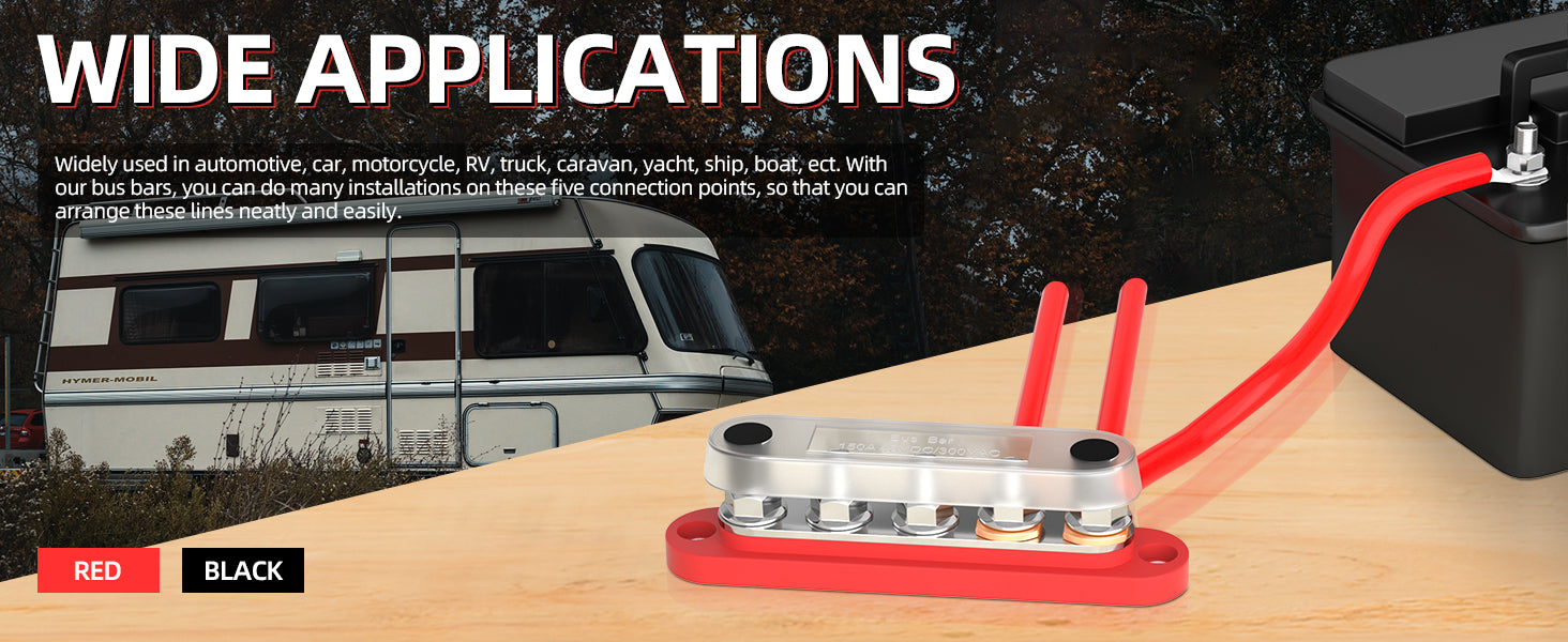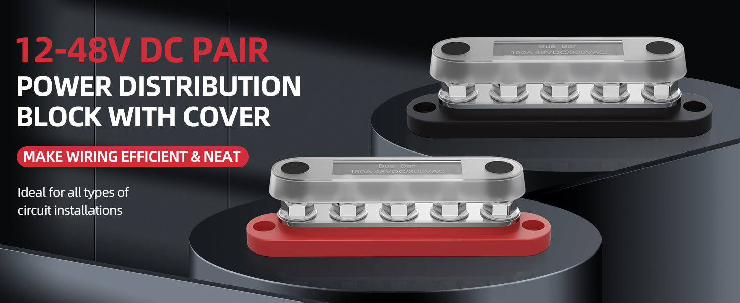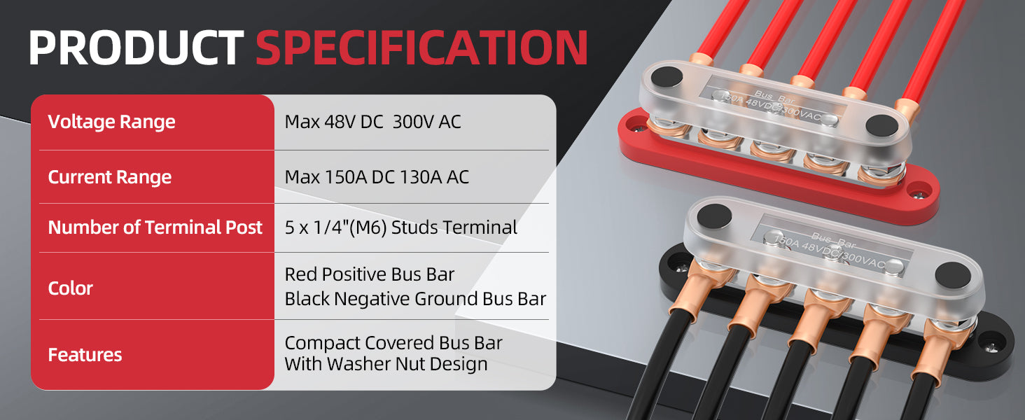 The DaierTek 12V bus bar features five 1/4" stainless steel studs and a durable nylon base with a protective cover. It supports up to 150A at 48V DC, offering low resistance and corrosion resistance thanks to its tinned copper plate. Designed for neat wiring, it prevents short circuits and fits various vehicles including cars, trucks, RVs, and boats. Its washer nuts ensure secure connections, making it a reliable choice for power distribution in automotive and marine applications.